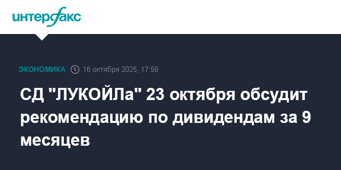 СД "ЛУКОЙЛа" 23 октября обсудит рекомендацию по дивидендам за 9 месяцев