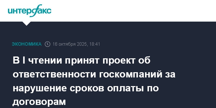 В I чтении принят проект об ответственности госкомпаний за нарушение сроков оплаты по договорам