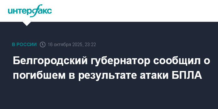 Белгородский губернатор сообщил о погибшем в результате атаки БПЛА