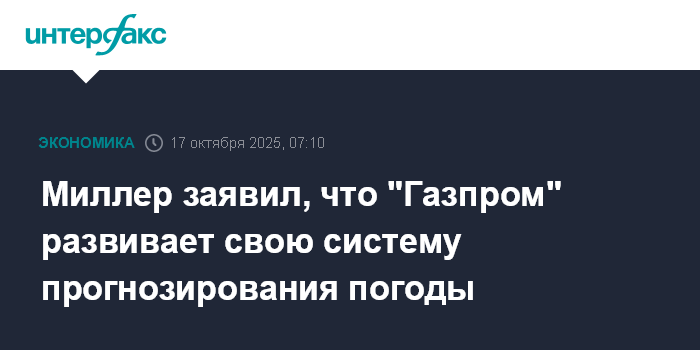 Москва. 17 октября. INTERFAX.RU - "Газпром", режимы работы производственного комплекса которого напрямую зависят от динамики температуры воздуха в регионах потребления, создает свою собственную систему предсказания погоды, поделился с журналистами председатель правления "Газпрома" Алексей Миллер.