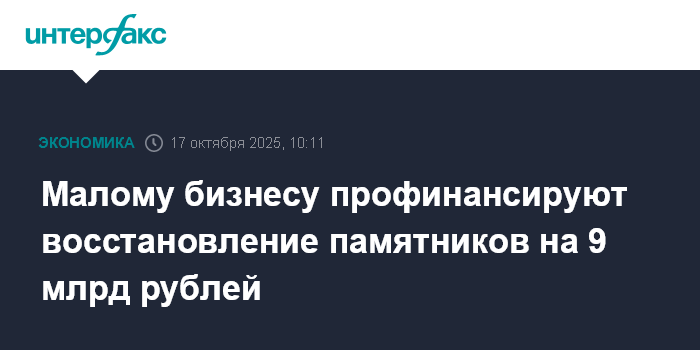 Малому бизнесу профинансируют восстановление памятников на 9 млрд рублей