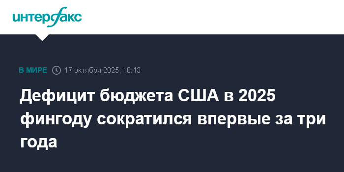 Дефицит бюджета США в 2025 фингоду сократился впервые за три года