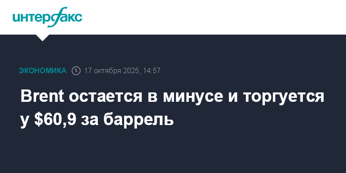 Brent остается в минусе и торгуется у $60,9 за баррель