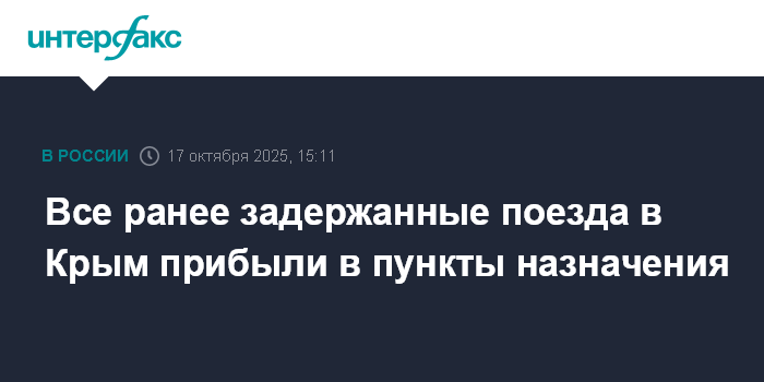 Москва. 17 октября. INTERFAX.RU - "Гранд Сервис Экспресс" (ГСЭ, оператор железнодорожных пассажирских перевозок в Крым и Севастополь) сообщил о прибытии всех ранее задержанных пассажирских поездов в Крым.
