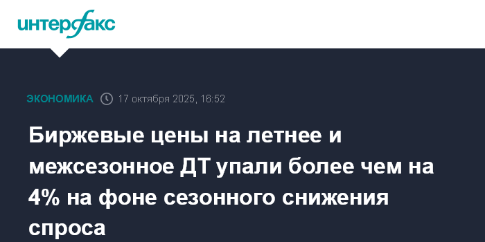 Биржевые цены на летнее и межсезонное ДТ упали более чем на 4% на фоне сезонного снижения спроса