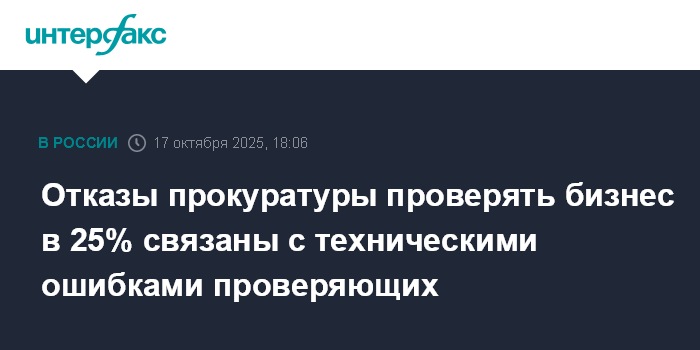 Отказы прокуратуры проверять бизнес в 25% связаны с техническими ошибками проверяющих