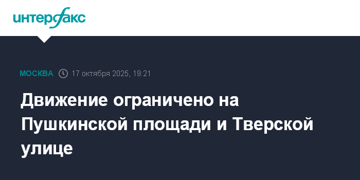 Москва. 17 октября. INTERFAX.RU - Столичный департамент транспорта сообщил о временном перекрытии в центре Москвы на Пушкинской площади и на Тверской улице по направлению в центр.