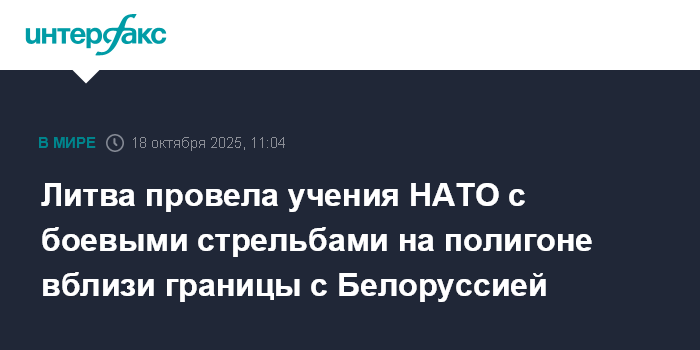 Москва. 18 октября. INTERFAX.RU - Международные учения Gelezinis Vilkas 2025-II ("Железный волк 2025-II") завершились учебными стрельбами в приближенных к реальным условиях на полигоне имени генерала Сильвестраса Жукаускаса в Пабраде, в 15 км от границы с Белоруссией, сообщила в субботу пресс-служба Минобороны Литвы.