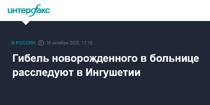 Гибель новорожденного в больнице расследуют в Ингушетии