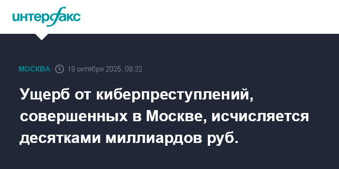 Москва. 19 октября. INTERFAX.RU - Сумма ущерба от киберпреступлений, совершенных в столице, превышает 30 млрд рублей и имеет тенденцию к росту, заявил начальник управления по организации борьбы с противоправным использованием информационно-коммуникационных технологий (УБК) МВД России по Москве Антон Кононенко.