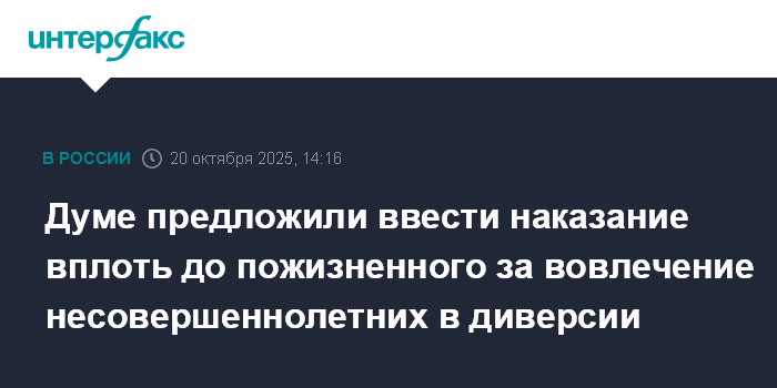 Думе предложили ввести наказание вплоть до пожизненного за вовлечение несовершеннолетних в диверсии