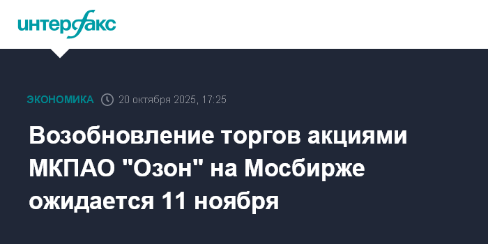 Возобновление торгов акциями МКПАО "Озон" на Мосбирже ожидается 11 ноября