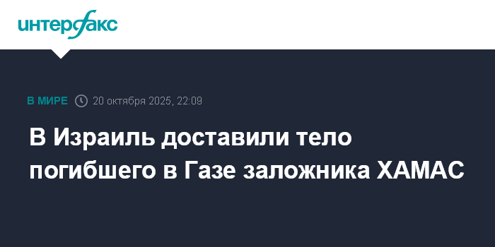 Москва. 20 октября. INTERFAX.RU - Армия обороны Израиля (ЦАХАЛ) доставила в Израиль тело погибшего заложника, переданное израильской стороне движением ХАМАС, говорится в понедельник в телеграм-канале ЦАХАЛ.