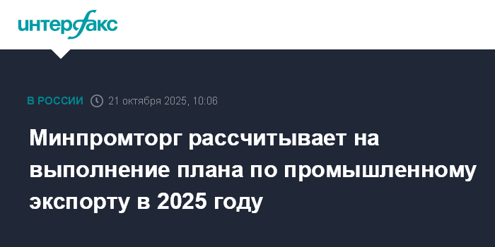 Минпромторг рассчитывает на выполнение плана по промышленному экспорту в 2025 году