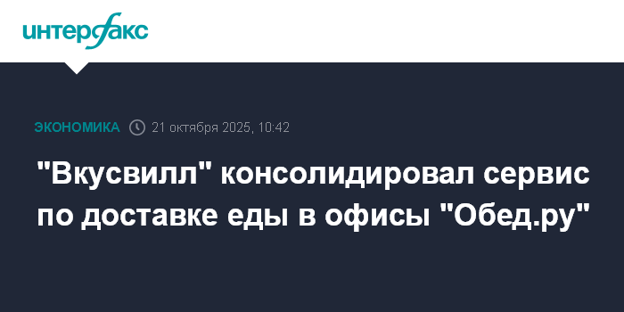 Москва. 21 октября. INTERFAX.RU - АО "Вкусвилл" довело до 100% долю в ООО "Обед.ру", платформе по доставке еды в офисы. Соответствующие изменения зафиксированы в ЕГРЮЛ.