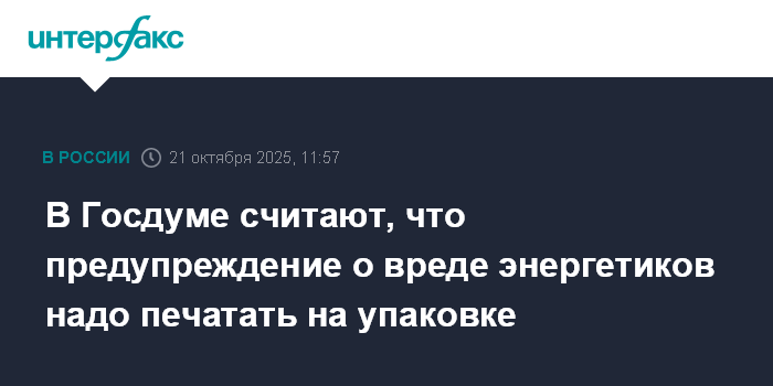 В Госдуме считают, что предупреждение о вреде энергетиков надо печатать на упаковке