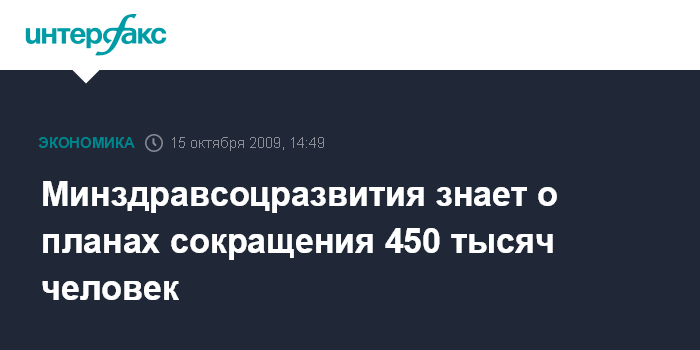 Минздравсоцразвития знает о планах сокращения 450 тысяч человек