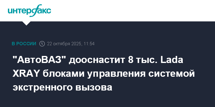 Москва. 22 октября. INTERFAX.RU - Росстандарт согласовал программу "АвтоВАЗа" по плановому дооснащению более 8 тыс. автомобилей Lada XRAY блоками управления системой вызова экстренных оперативных служб (СВЭОС).