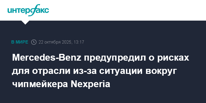 Mercedes-Benz предупредил о рисках для отрасли из-за ситуации вокруг чипмейкера Nexperia