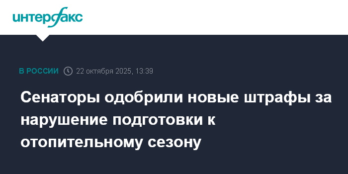 Москва. 22 октября. INTERFAX.RU - Совет Федерации одобрил закон о повышении штрафов за необеспечение готовности к отопительному сезону.