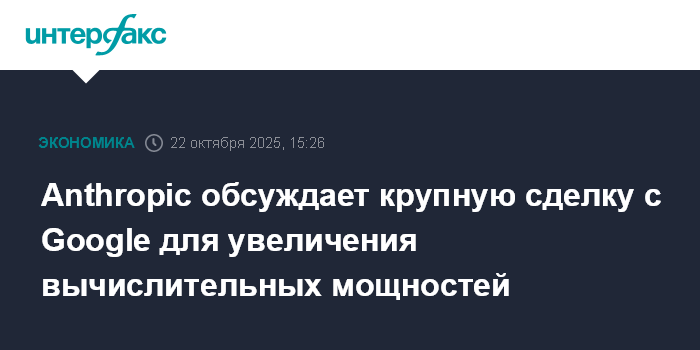 Москва. 22 октября. INTERFAX.RU - Anthropic обсуждает с Google сделку объемом несколько десятков миллиардов долларов, которая обеспечит ИИ-стартапу доступ к дополнительным вычислительным мощностям, сообщает Bloomberg со ссылкой на информированные источники.