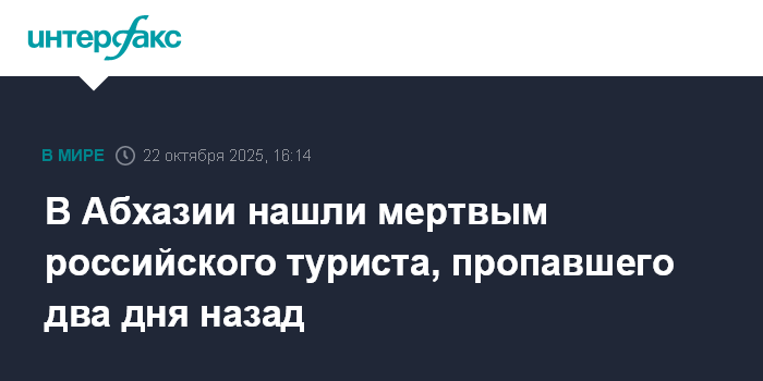 Москва. 22 октября. INTERFAX.RU - Спасатели МЧС Абхазии обнаружили тело российского туриста из Архангельской области, пропавшего ранее в селе Кындыг, сообщает в среду пресс-служба ведомства.