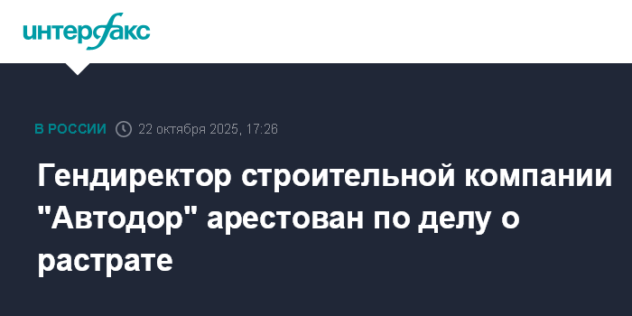 Гендиректор строительной компании "Автодор" арестован по делу о растрате
