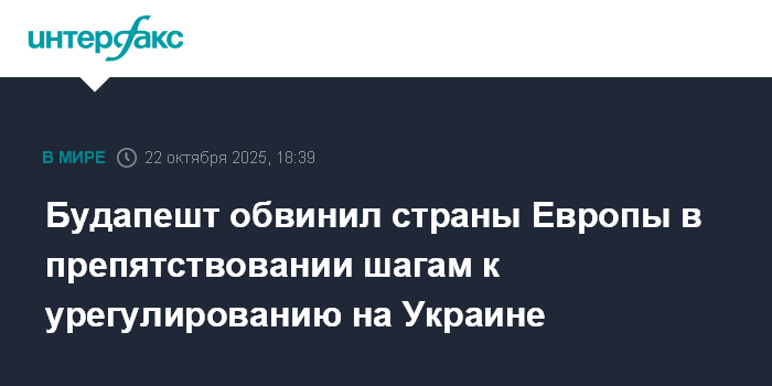 Москва. 22 октября. INTERFAX.RU - Многие европейские страны не заинтересованы в успешной встрече лидеров России и США Владимира Путина и Дональда Трампа и потому не поддерживают шаги, которые могли бы привести к завершению украинского конфликта, заявил The Washington Post МИД Венгрии Петер Сийярто.