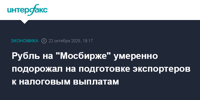 Рубль на "Мосбирже" умеренно подорожал на подготовке экспортеров к налоговым выплатам
