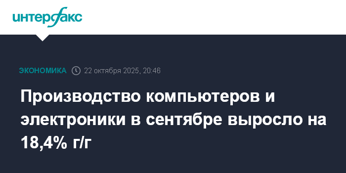 Производство компьютеров и электроники в сентябре выросло на 18,4% г/г