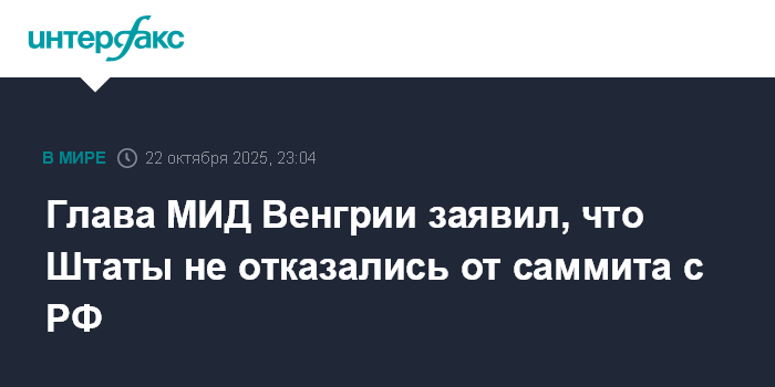 "После встречи с госсекретарем США Марко Рубио очевидно, что США не отказались от проведения саммита мира в Будапеште. Подготовка ведется. Единственный вопрос - это сроки, а не намерения (сторон - ИФ)", - написал Сийярто в соцсетях.