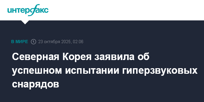 Москва. 23 октября. INTERFAX.RU - Главное управление ракетостроения КНДР накануне утром успешно провело запуск "важного вооружения" - двух гиперзвуковых снарядов, сообщает ЦТАК.