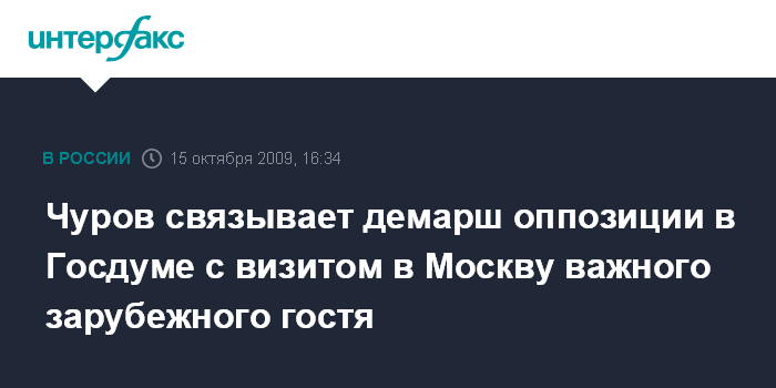 Москва. 15 октября. INTERFAX.RU - Глава ЦИК РФ Владимир Чуров вновь объяснил политическими соображениями состоявшийся накануне в Госдуме демарш оппозиционных партий, но на этот раз увязал эти действия с визитом в Россию важного иностранного гостя.