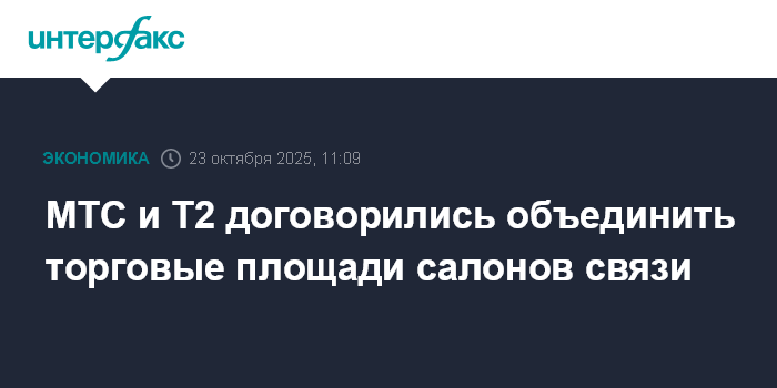 Москва. 23 октября. INTERFAX.RU - ПАО "МТС" и Т2 (ООО "Т2 Мобайл", принадлежит ПАО "Ростелеком") договорились об объединении торговых площадей салонов связи, объявили операторы.