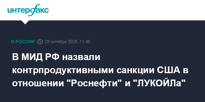 В МИД РФ назвали контрпродуктивными санкции США в отношении "Роснефти" и "ЛУКОЙЛа"