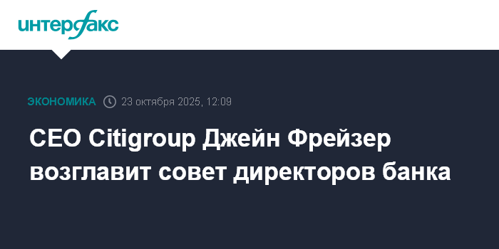 CEO Citigroup Джейн Фрейзер возглавит совет директоров банка
