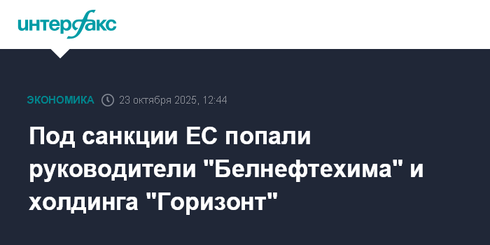 Москва. 23 октября. INTERFAX.RU - Евросоюз ввел санкции в отношении белорусского производителя микроэлектроники - холдинга "Горизонт", персональные санкции против его гендиректора Юрия Предко и председателя концерна "Белнефтехим" Ильи Икана.