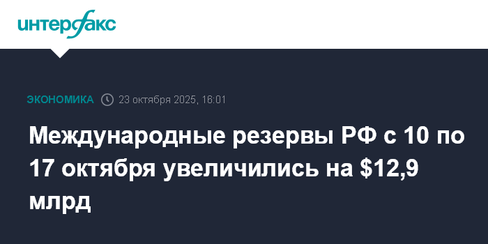 Международные резервы РФ с 10 по 17 октября увеличились на $12,9 млрд