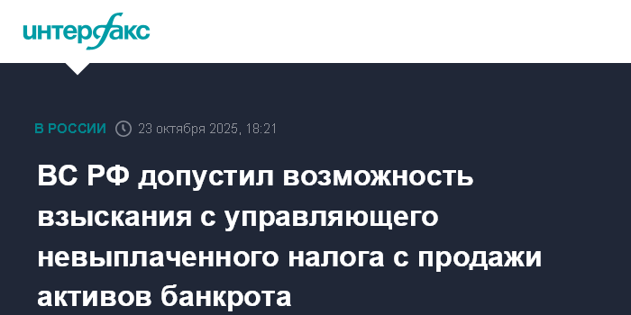 ВС РФ допустил возможность взыскания с управляющего невыплаченного налога с продажи активов банкрота