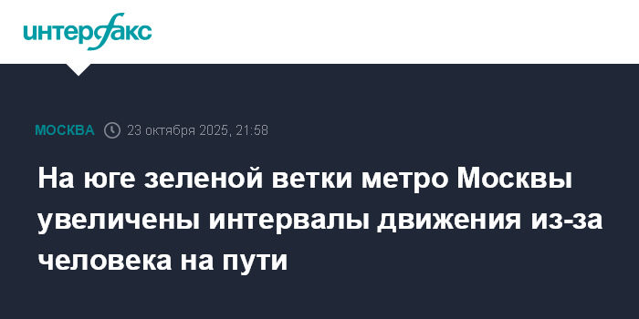 На юге зеленой ветки метро Москвы увеличены интервалы движения из-за человека на пути