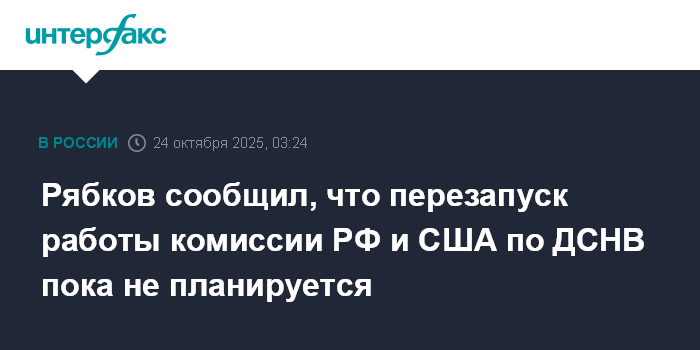 Москва. 24 октября. INTERFAX.RU - Возобновление работы двусторонней консультативной комиссии России и США по ДСНВ пока не планируется, заявил газете "Известия" замглавы МИД РФ Сергей Рябков.