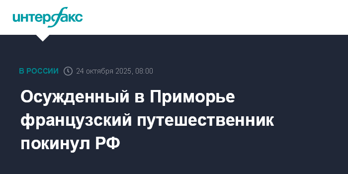 Москва. 24 октября. INTERFAX.RU - Французский велопутешественник Софиан Сехили, осужденный накануне в Приморье по делу о незаконном пересечении государственной границы РФ, покинул Россию и возвращается во Францию, сообщила "Интерфаксу" его адвокат Алла Кушнир в пятницу.