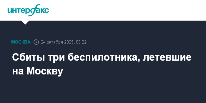 Москва. 24 октября. INTERFAX.RU - Мэр Москвы Сергей Собянин заявил об уничтожении в пятницу утром трех БПЛА, летевших в направлении столицы.