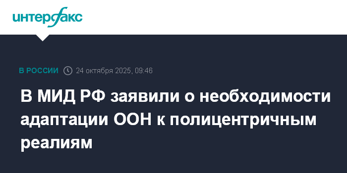 В МИД РФ заявили о необходимости адаптации ООН к полицентричным реалиям
