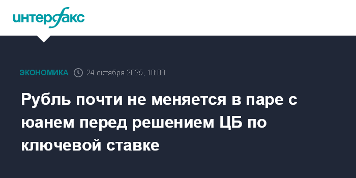 Москва. 24 октября. INTERFAX.RU - Китайский юань незначительно повышается на Московской бирже утром в пятницу. Рубль слегка опускается перед решением Банка России по ключевой ставке.