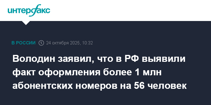 Володин заявил, что в РФ выявили факт оформления более 1 млн абонентских номеров на 56 человек