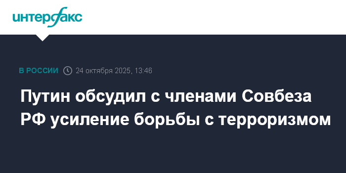 Москва. 24 октября. INTERFAX.RU - Президент РФ Владимир Путин обсудил с постоянными членами Совбеза РФ усиление мер по борьбе с терроризмом.