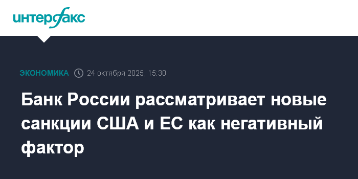 Банк России рассматривает новые санкции США и ЕС как негативный фактор