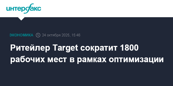 Москва. 24 октября. INTERFAX.RU - Американская Target Corp., владелец одной из крупнейших в США сетей дисконтных магазинов, планирует уволить 1 000 работников и сократить 800 открытых вакансий в рамках усилий, направленных на оптимизацию управленческой структуры. Об этом пишет The Wall Street Journal.