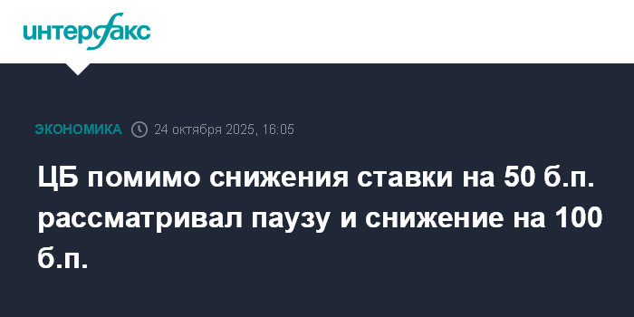 ЦБ помимо снижения ставки на 50 б.п. рассматривал паузу и снижение на 100 б.п.